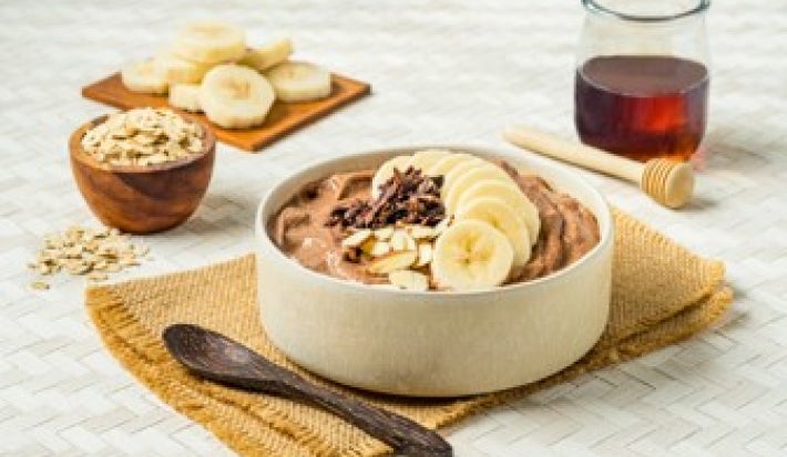 Deléitate con un CHOCO PLÁTANO SMOOTHIE BOWL, una mezcla CREMOSA de plátano, cacao y toppings DELICIOSOS. ¡Un desayuno lleno de sabor y energía!