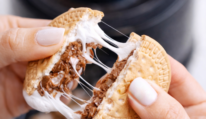 - 2.Arma los s’more a tu gusto, colocando los marshmallows con chocolate en medio de dos galletas de leche y disfruta.